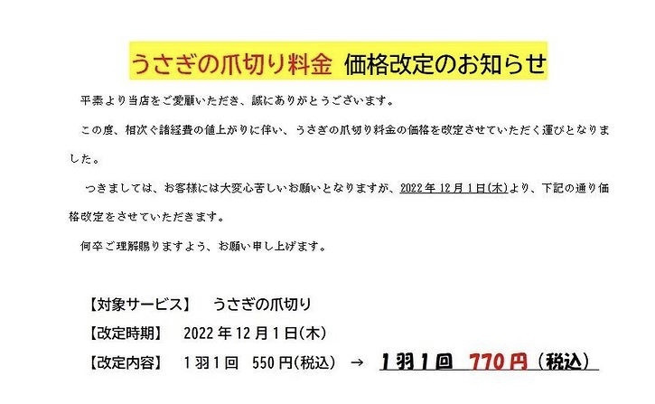 • ≪料金改定のお知らせ✨≫