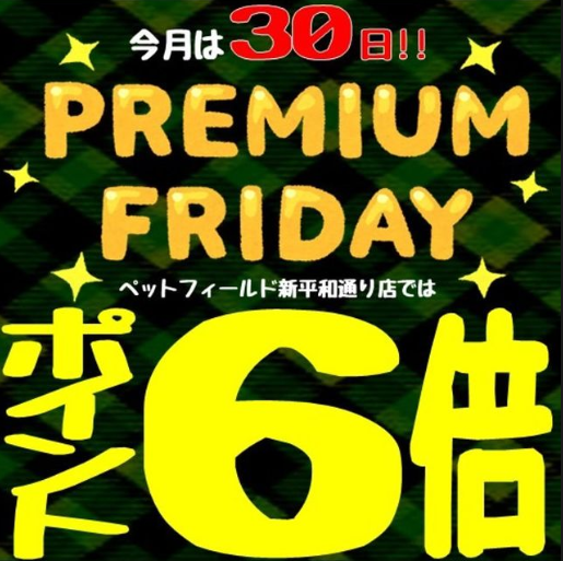 今日は何の日? ペットフィールドプレミアムフライデー!!!!!! 平和通り店ではポイント6倍です♪ LINE登録もぜひ♪ https://page.line.me/?accountId=p... -