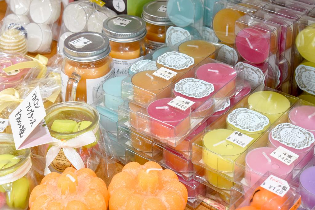 ドアを開けた瞬間、ふわっと優しい香りが広がる。店内はイギリスのガーデンショップをイメージ。お香やキャンドルなど暮らしのシーンにあった香りの世界をご提案♪