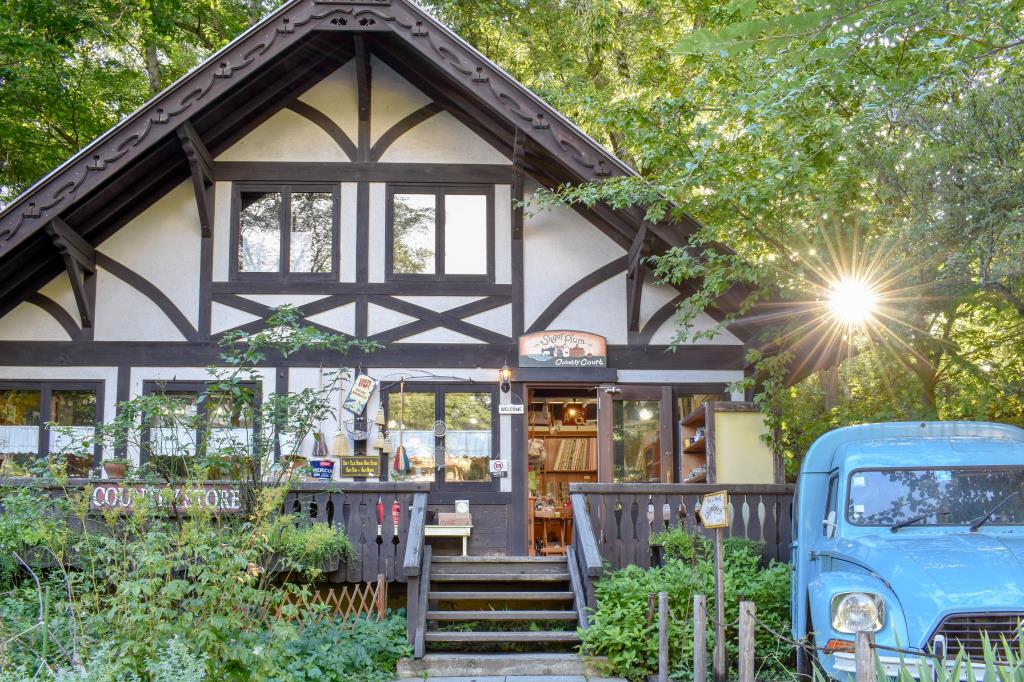 萌木の村内、水色のクラッシックカーが目印の雑貨店。