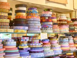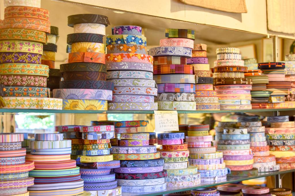店内に一歩足を踏み入れると大小カラフルなリボンがずらりと並ぶ。店主自ら海外で買い付けた上質なリボンの中から好きな物を選んでオリジナルオーダーができるのがエレンの魅力。