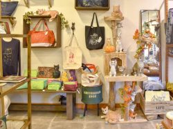 看板猫のカウくんがお出迎え♡萌木の村内の猫グッズ専門店。