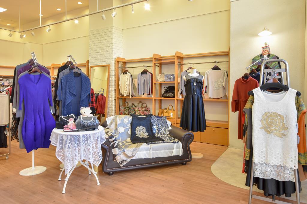 「年齢問わずオシャレを楽しむ」をコンセプトに1点1点仕入れた洋服は日常使いからフォーマルまで幅広く取り揃えている。