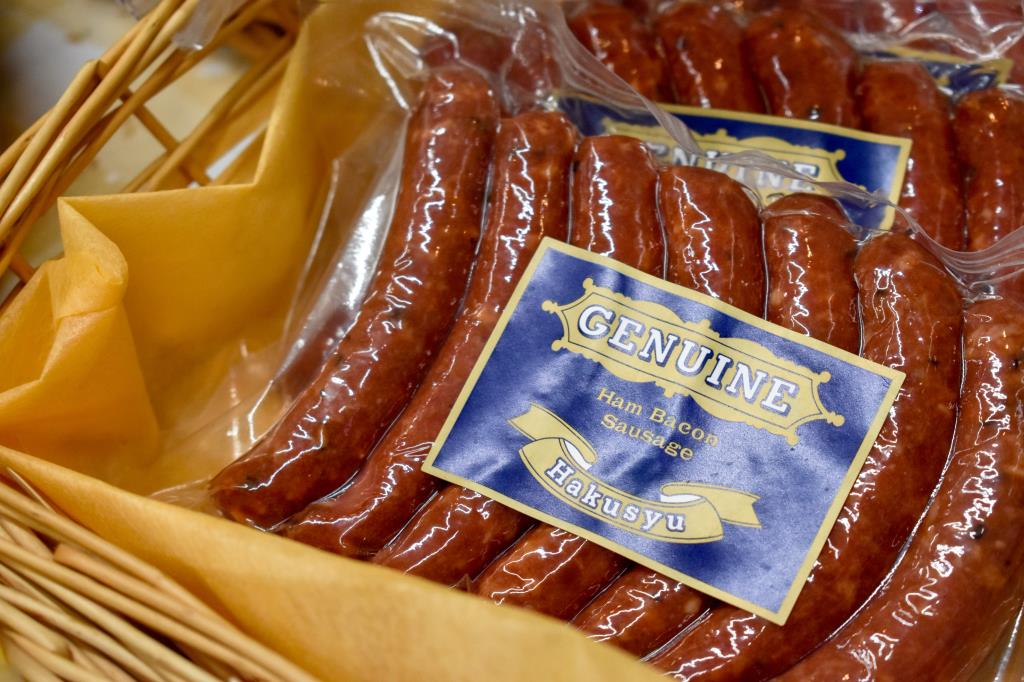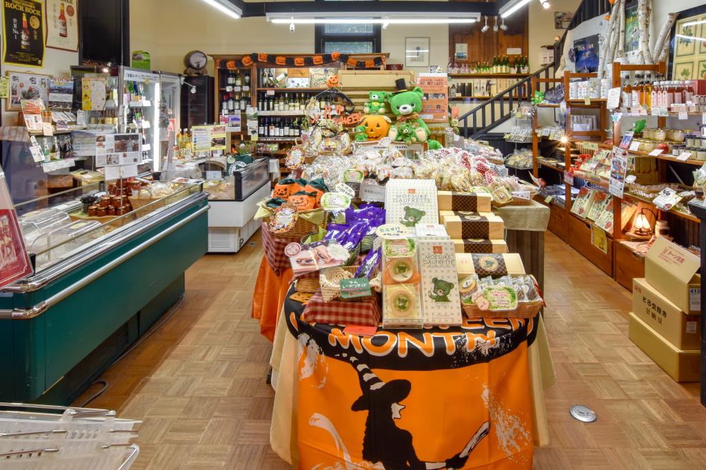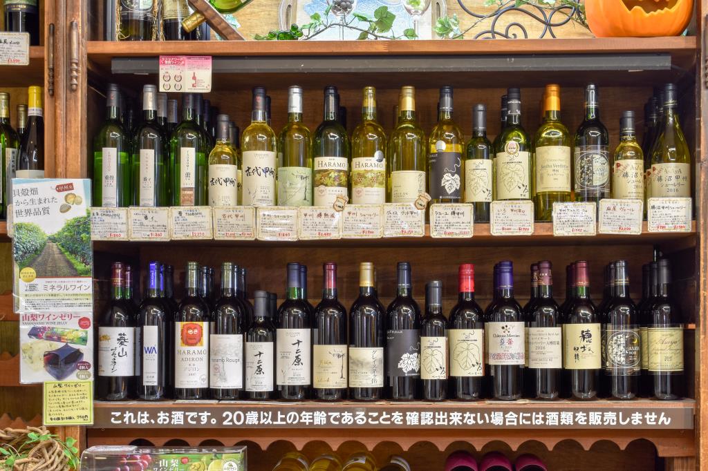 地元山梨の美味しいワインをはじめ、特製のオリジナルドレッシング、信州のお漬物、オリジナルバームクーヘンや燻製などおみやげにぴったりの食品を豊富に取り揃えている。