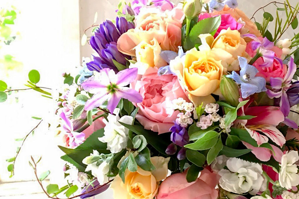 またお客様の要望をしっかりと聴き、時間をかけてつくりあげるアレンジメントは、花を贈る人も贈られる人も幸せな気持ちにさせてくれる。