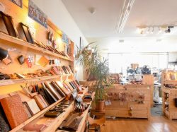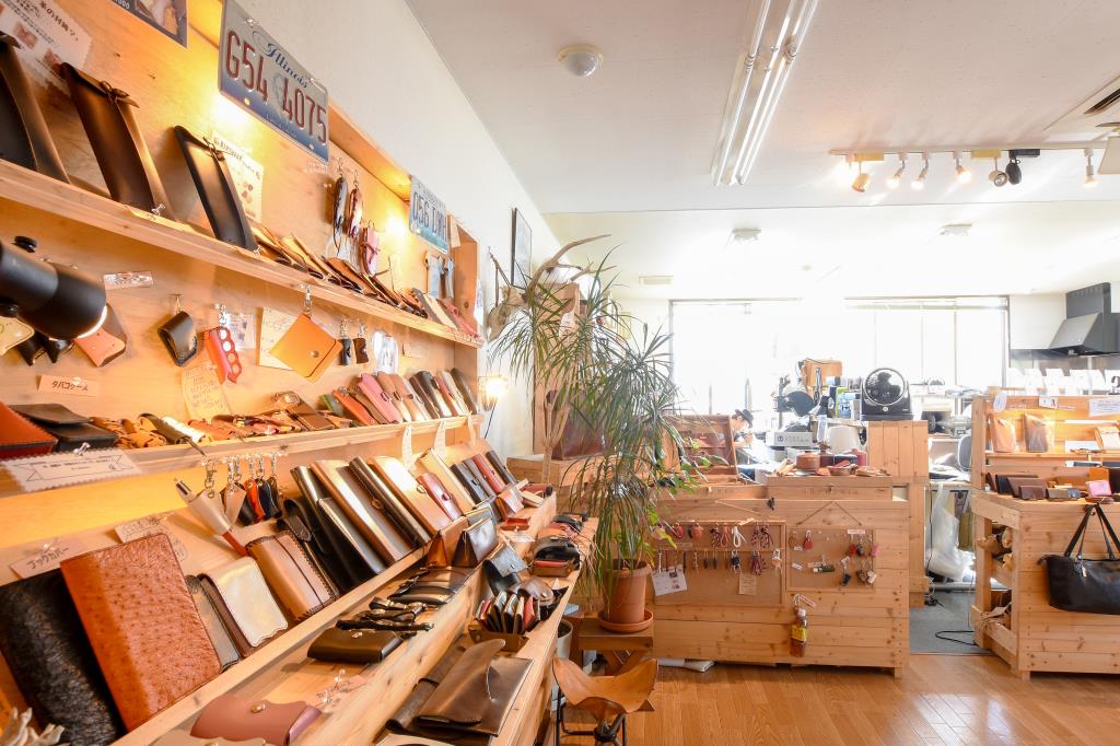 落ち着きのある店内では作り手さんに直接相談でき、デザイン・革・糸など自由に決めてオーダーができる。大量発注も承っているので会社の記念品やオリジナル商品にもおすすめ。