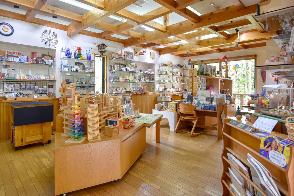 コンセプトは子供から大人まで誰もが「楽しく遊ぶ!!」こと。木製玩具やパズル、ボードゲーム、オルゴールからインテリア雑貨まで1,000種類以上の品揃えで子供も大人もわくわくする空間。