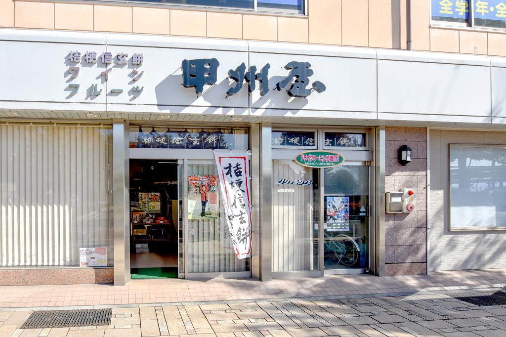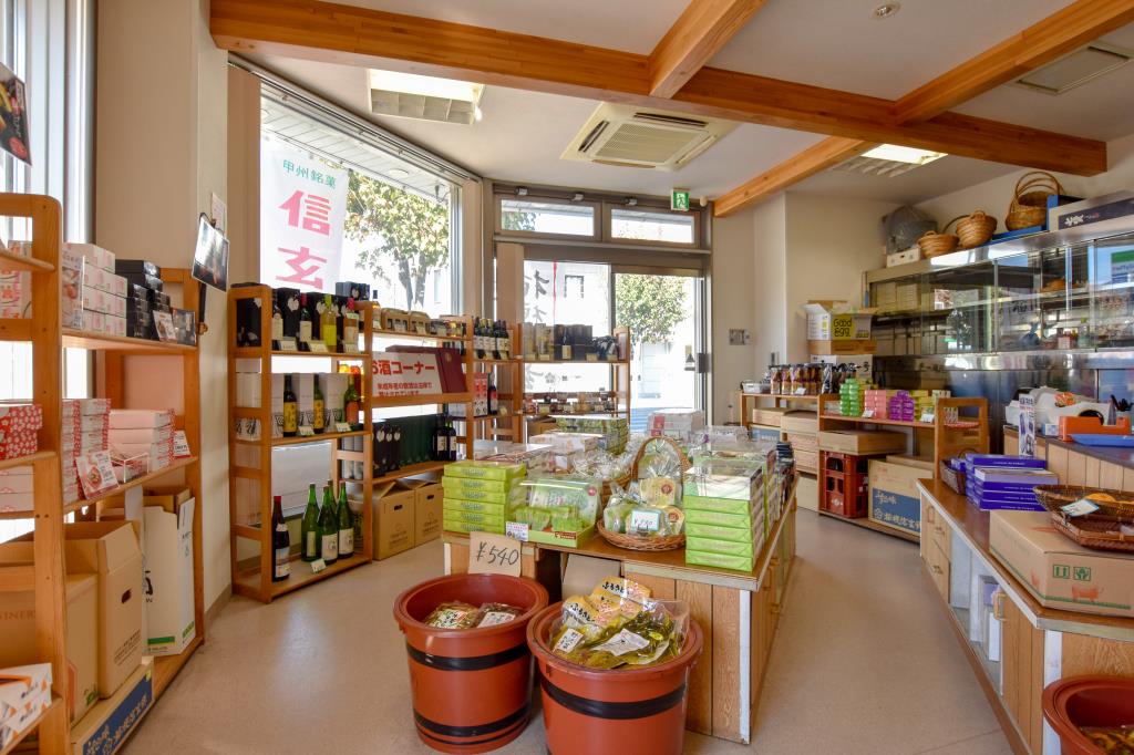 夏は桃、秋はぶどうなど農家から直接仕入れた旬の果実がずらりと並び山梨観光の思い出作りに人気の場所となっている。他にも桔梗信玄餅や県産ワインを中心とする山梨ならではの品が数多く売られている。