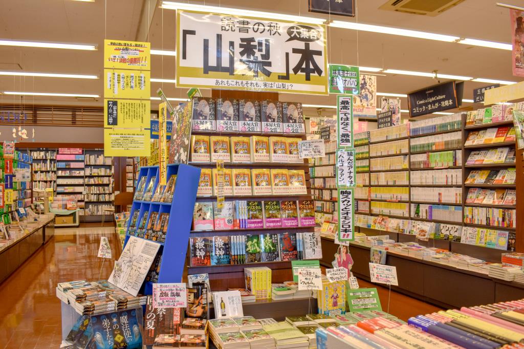 山梨を舞台にした著書や、山梨県出身または在住の作家の作品等に力を入れている書店。