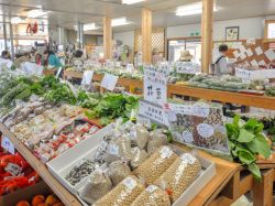 その日の朝に収穫した新鮮な野菜や果物などを販売。手ごろな価格で旬の食材を手に入れられることから県内外から絶大な人気を集めている。午前中の来店が狙い目で、運が良ければ生産者の方と直接話せるかも。
