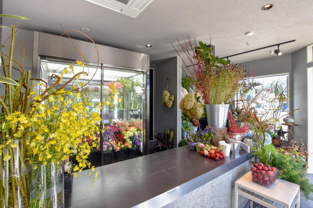 真っ白な外壁にモダンな雰囲気の店内が印象的なフラワーショップ「花みずき」は、気軽に立ち寄りやすく特に男性の利用が多いお店。