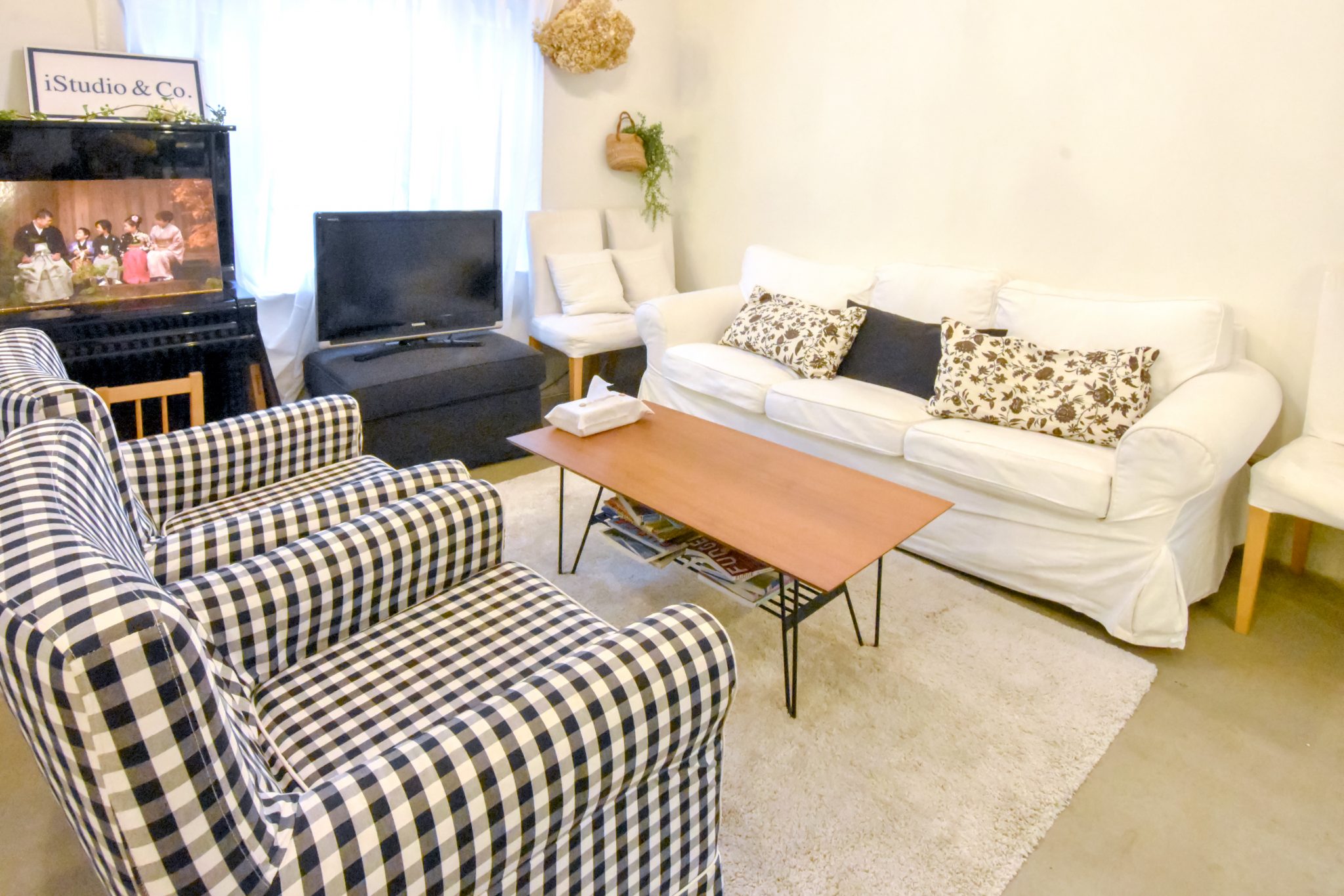 写真館と言っても堅苦しくなく、白を基調としたオシャレなスタジオで撮影時間が楽しくなる空間を用意。