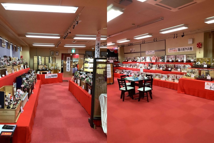 コンパクトなお雛様からモダンなお雛様、出し入れが便利な親王ケースまで店内には様々なお雛様が並んでおります。