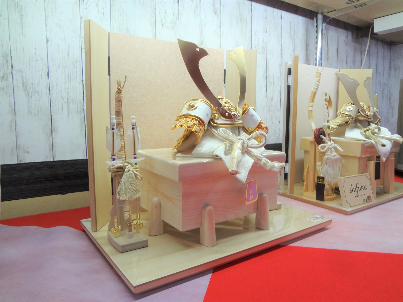 既に五月人形が展示されております。商品の数には限りがございますのでお早めに足を運んで下さい。