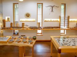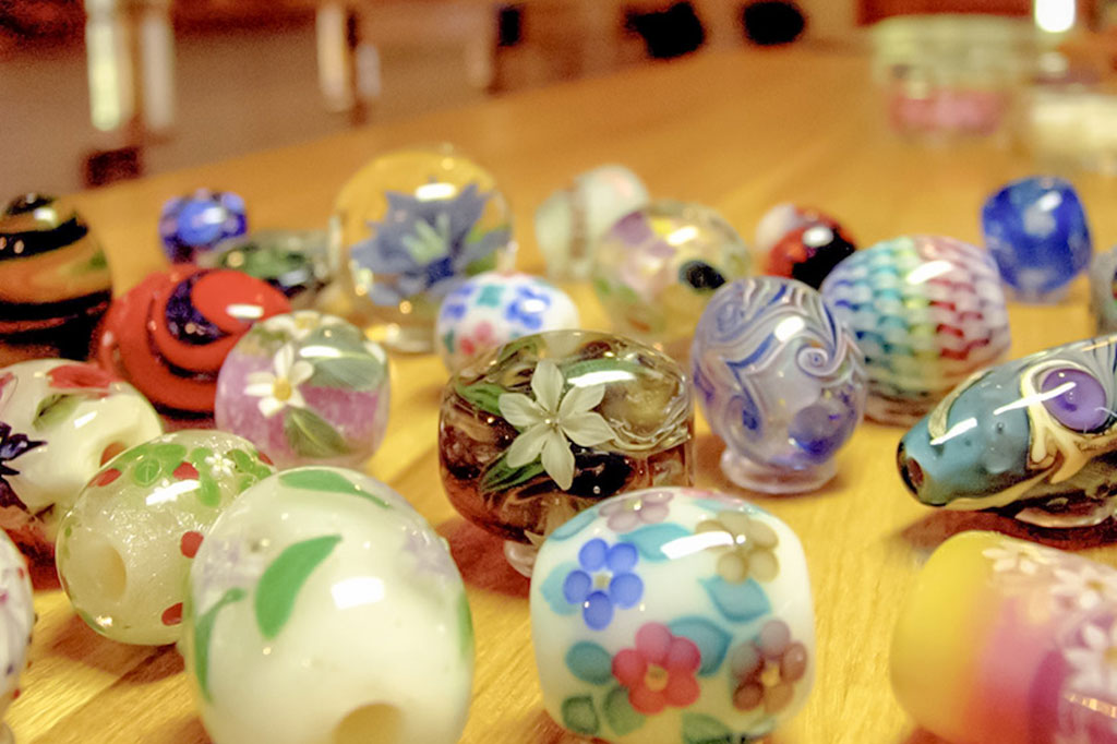 とんぼ玉・ガラスを主体としたアクセサリーやステンドグラス等を制作し、併設されたギャラリー&ショップにて、オリジナルアクセサリーや国内外の有名アーティスト作品などを数多く展示・販売している。