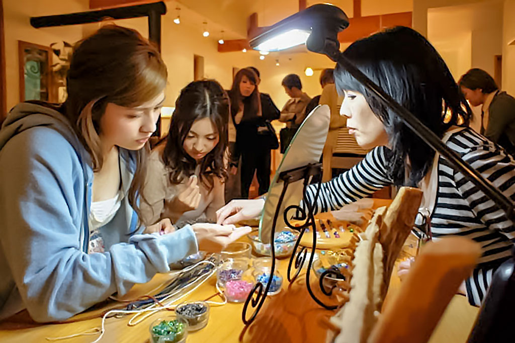 細部にもこだわりオリジナルパーツを組み合わせているので、自分用はもちろんプレゼント選びにもぴったり♪とんぼ玉作りやアクセサリー作りの体験も行っているので気軽に訪れてみては。