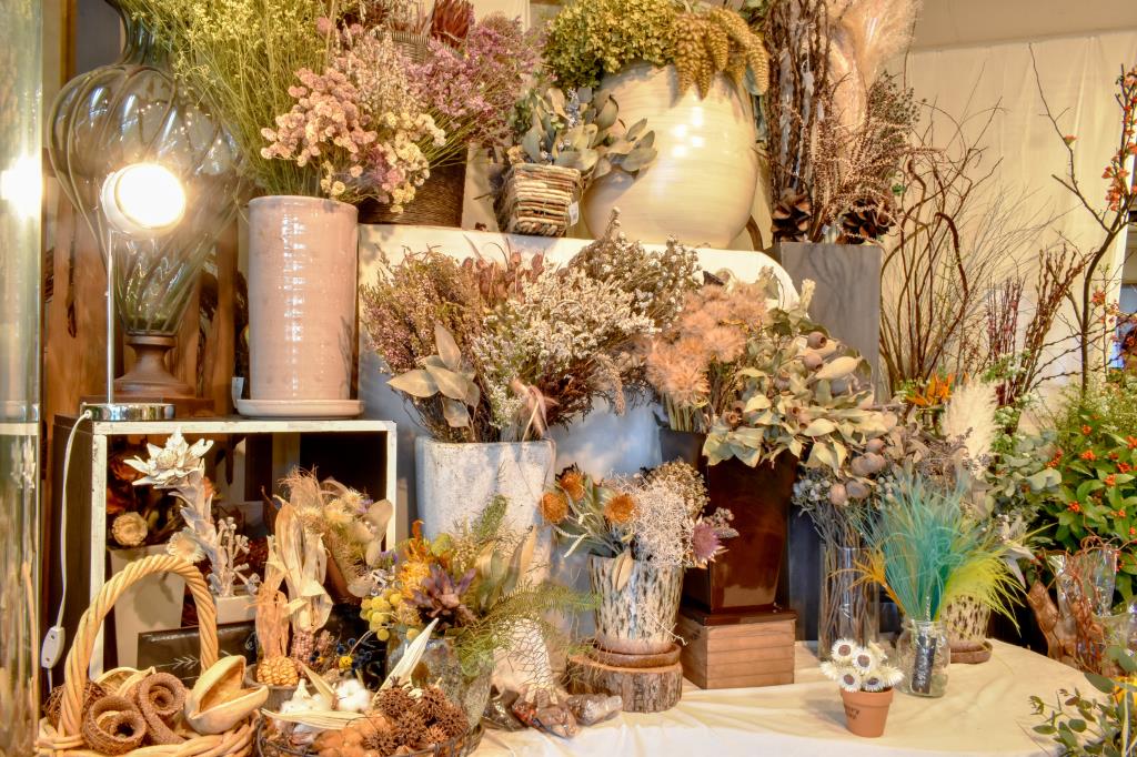 生花、プリザーブドフラワー、アーティフィシャルフラワーなど季節に合わせて様々な商品を取り扱っている。