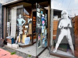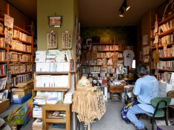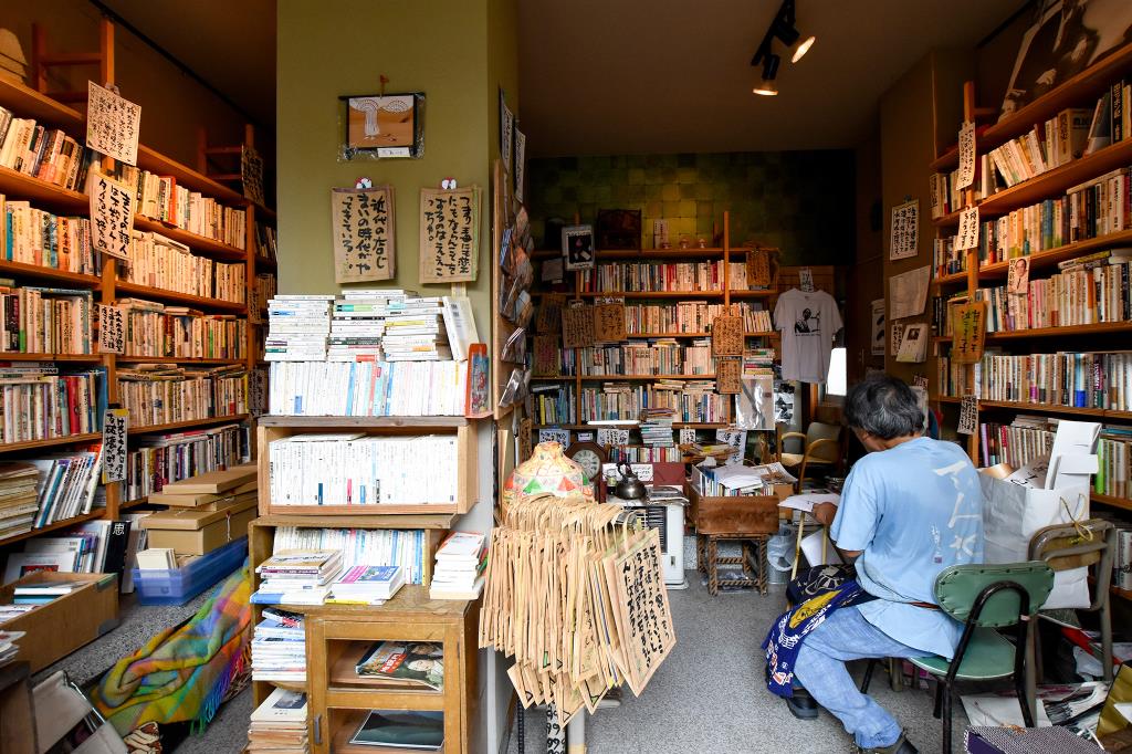 店内は床から天井までありとあらゆるジャンルの古本が敷き詰められ、ここ以外では手に入らない個性的な富士山グッズも取り扱っている。