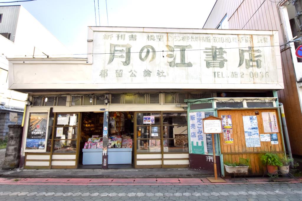 富士吉田市月江寺のレトロな路地に佇む、老舗の本屋「月の江書店」。