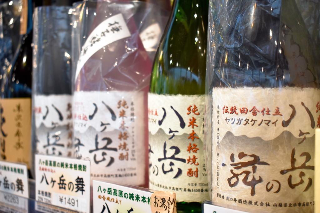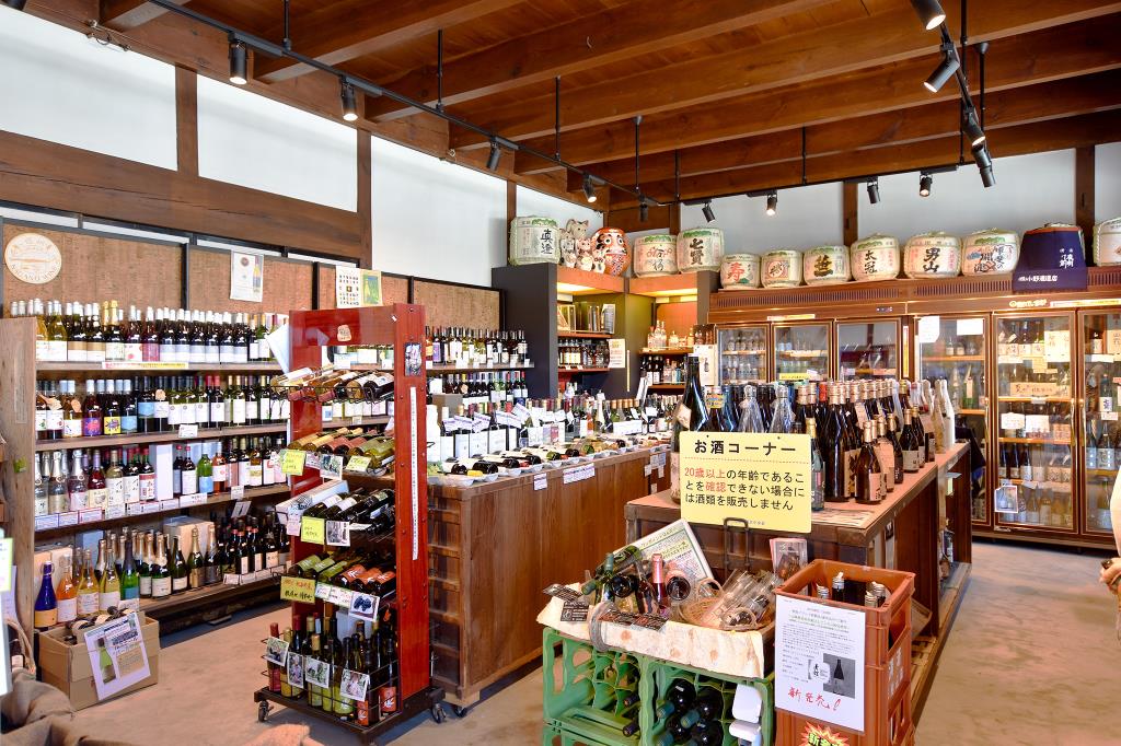 その土地を活かし、山梨と長野の厳選したお酒を取り揃え。中でも地元北杜市の蔵元のお酒はここに来れば全てが揃っている。