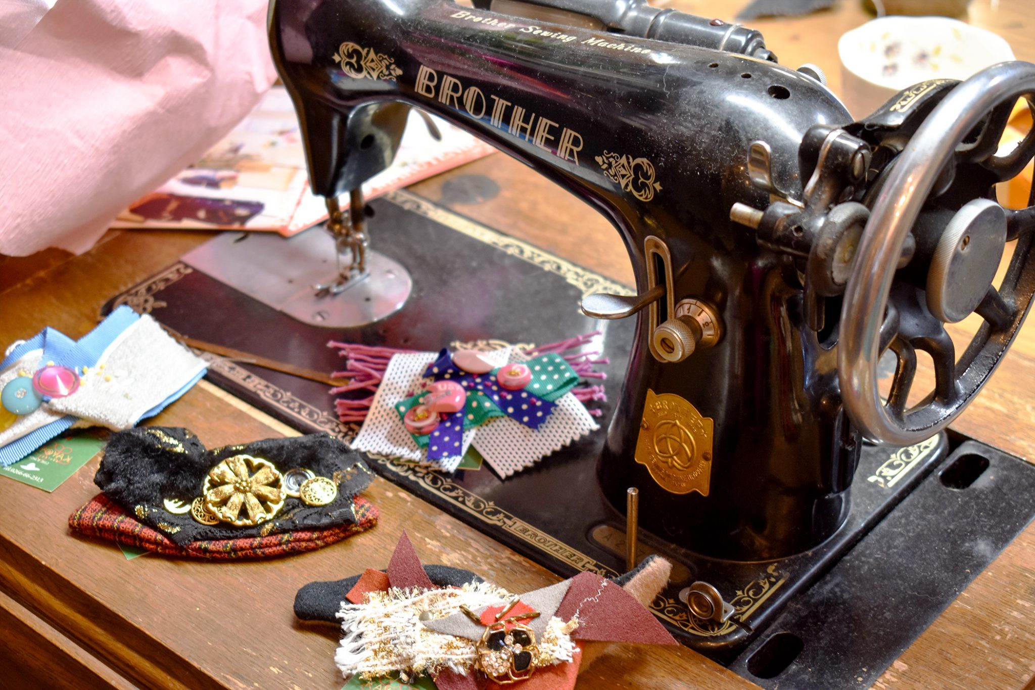 色に囲まれることが好きという上村さんが手づくりする帽子は、全て一点もの。カラフルな色使いや意外な布の組み合わせを楽しめる。