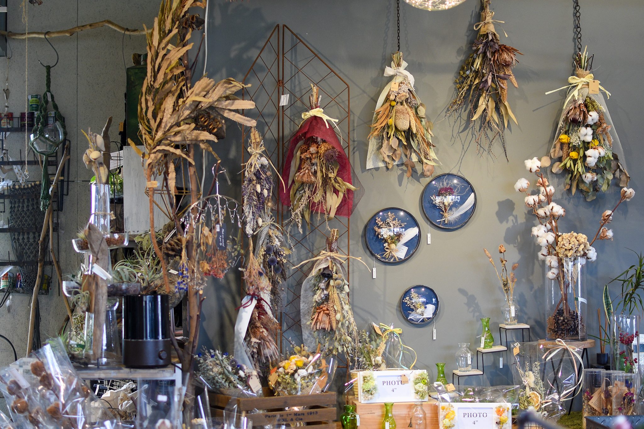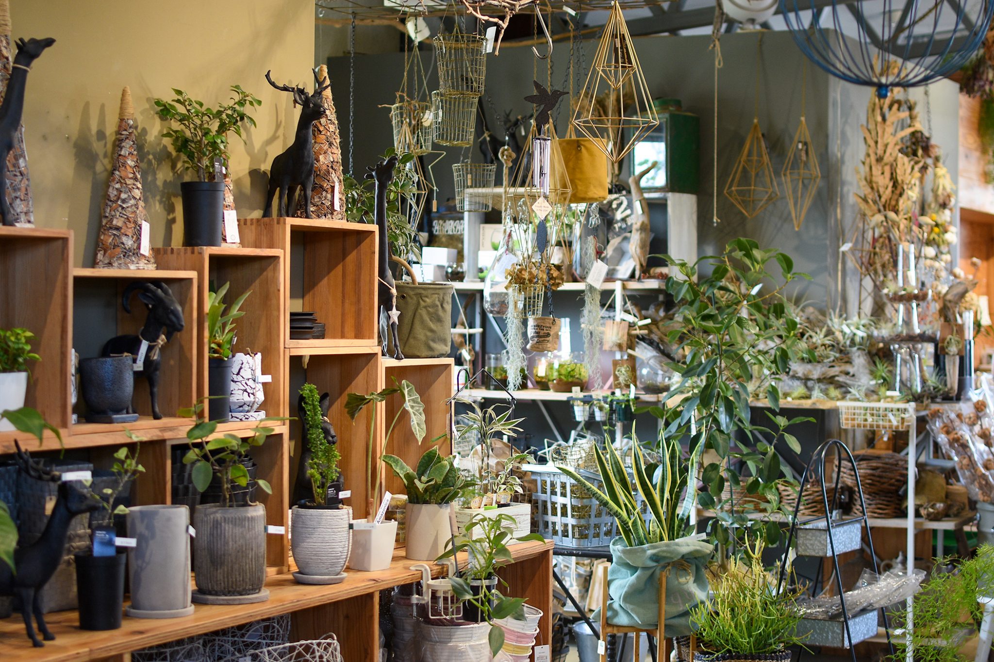 バラ苗をメインに、季節の花苗や観葉植物、ドライフラワー、ガーデニング雑貨など、幅広く商品を揃えている。
