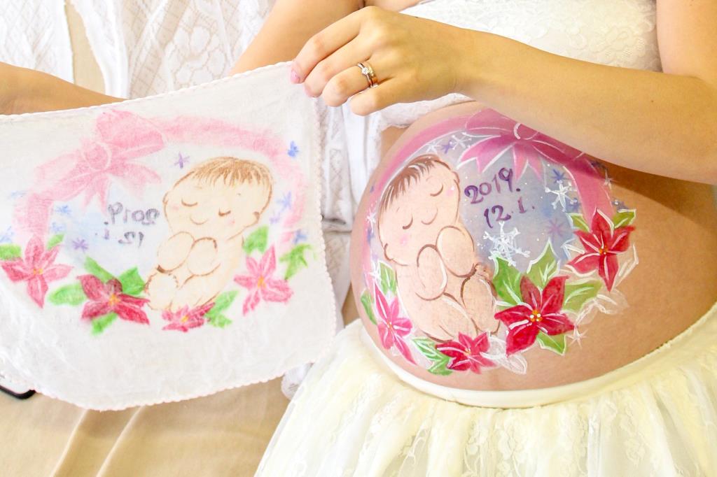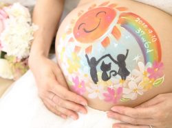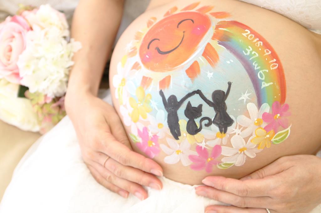 「Belly(ベリー)=お腹」に絵を描くことから「ベリーペイント」と呼ばれ、安産祈願をこめて描くベリーペイントは、妊娠期の思い出作りにもおすすめ。