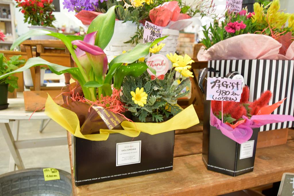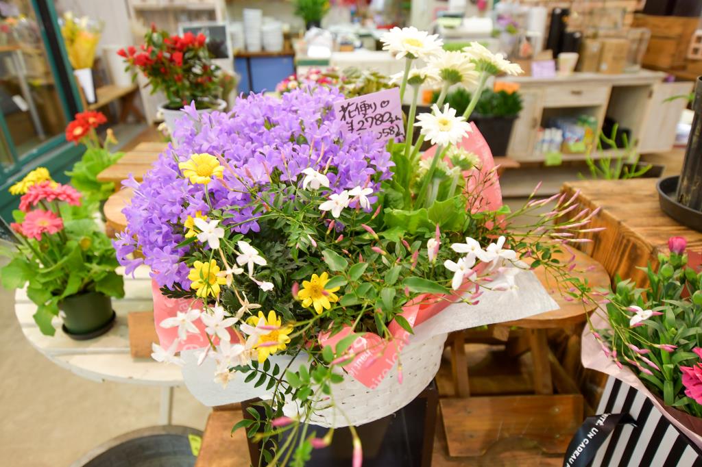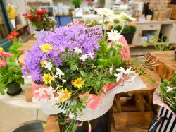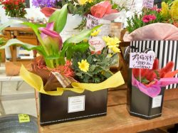 アレンジメントや花束・鉢寄せなど季節の花で作ってくれる。