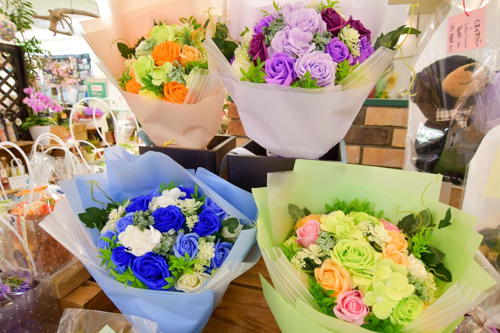 生花以外でも石鹸で作られた「Soap Bouquet」など贈り物にも最適。