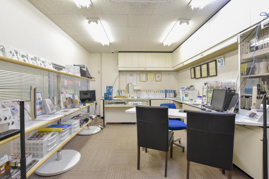 1階は999.9、lafont、MASUNAGAをはじめとした様々なブランドの眼鏡コーナーを展開。それだけでなく、2階は県内唯一の認定補聴器専門店となっており、最新の設備が整っている。