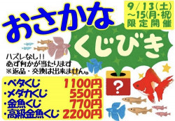 ペットフィールド新平和通り店にて、、、 9月13.14.15日 金魚くじ …甲府市