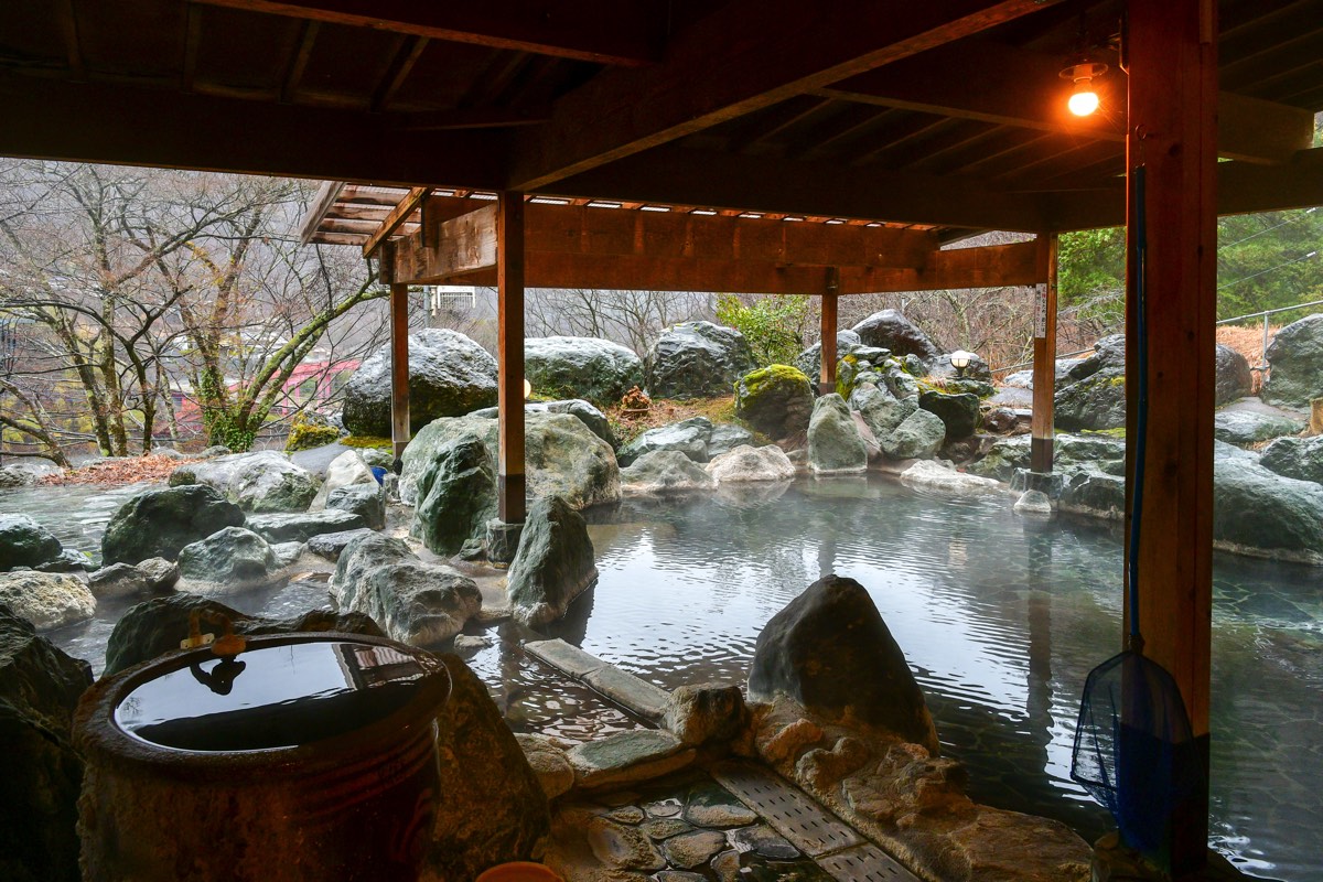 源泉は43度、循環や加温を一切しない全国有数の源泉かけ流しで、温泉好きにはたまらない。古めいた施設内も奥ゆかしく、まるで迷路のように伸びる廊下の先に大岩露天風呂が。岩園館までの目印になる赤い橋や自然に囲まれた芦安地域の景色を思う存分堪能できる。また、夜叉神峠も近く、岩園館からおおよそ30分で登山口へ、さらに山頂展望台までは1時間と初心者にも嬉しいハイキングコースもあり、登山で訪れる方にもオススメだ。