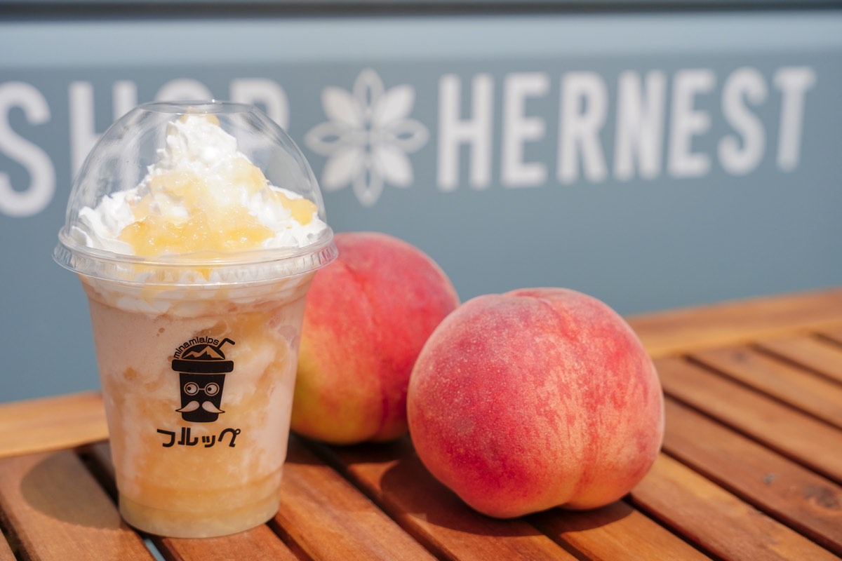 中でも定評のあるドリンクは「フルーツ」と「フラッペ」を掛け合わせた “フルッペ”!毎年、桃がとれるとスタートする夏期限定商品。約1個以上のフローズンした桃と牛乳をミキサーにかけることで、桃本来の旨味や甘みがたっぷりと感じられる。中には自家製の桃シロップが入っており、ゴロゴロと入った食感がアクセントに。桃が終わると、ぶどうやシャインマスカットのフルッペが登場するので、季節限定の味わいをぜひチェックしてみては。