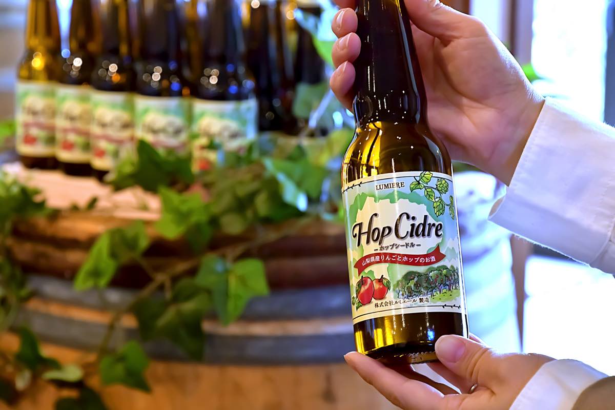 おすすめは、自転車でも持ち帰りやすいクラフト瓶のホップシードル。りんごとホップの爽やかな香りとさっぱりとした微炭酸が春にぴったり!