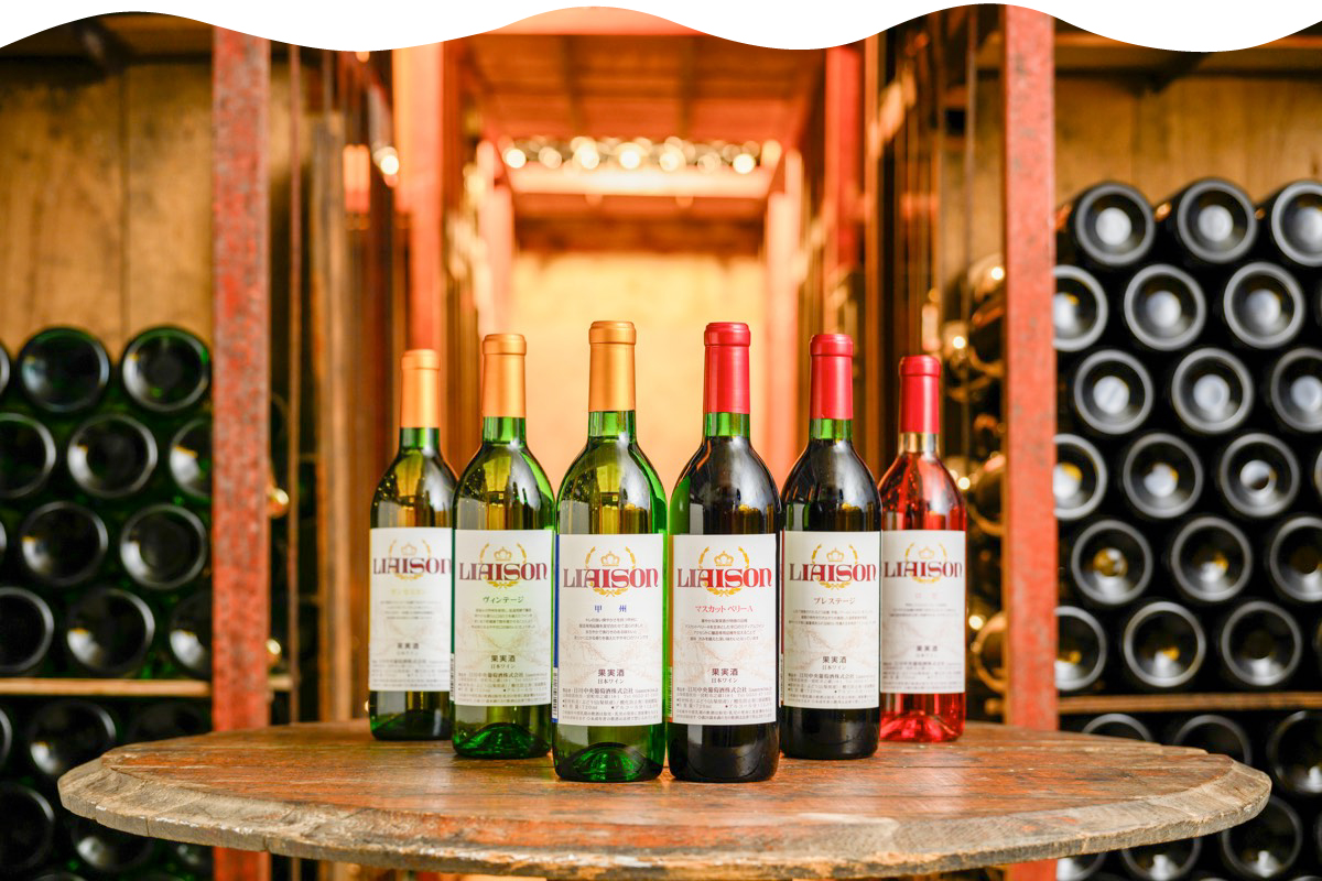 生産者とお客様を繋げられるようにと「結ぶ・繋ぐ」を意味する「LIAISON」。初心を忘れずにと「新人・未熟者」を意味する「NOVICE」。そして糖と酸のバランスに優れた副梢栽培にこだわった少量生産の「CHÂTEAU LIAISON」の3ブランドで展開する。蔵の中はショップと試飲スペースになっており、それぞれの名前に込められた想いと共に、その味わいを堪能しながら購入できる。