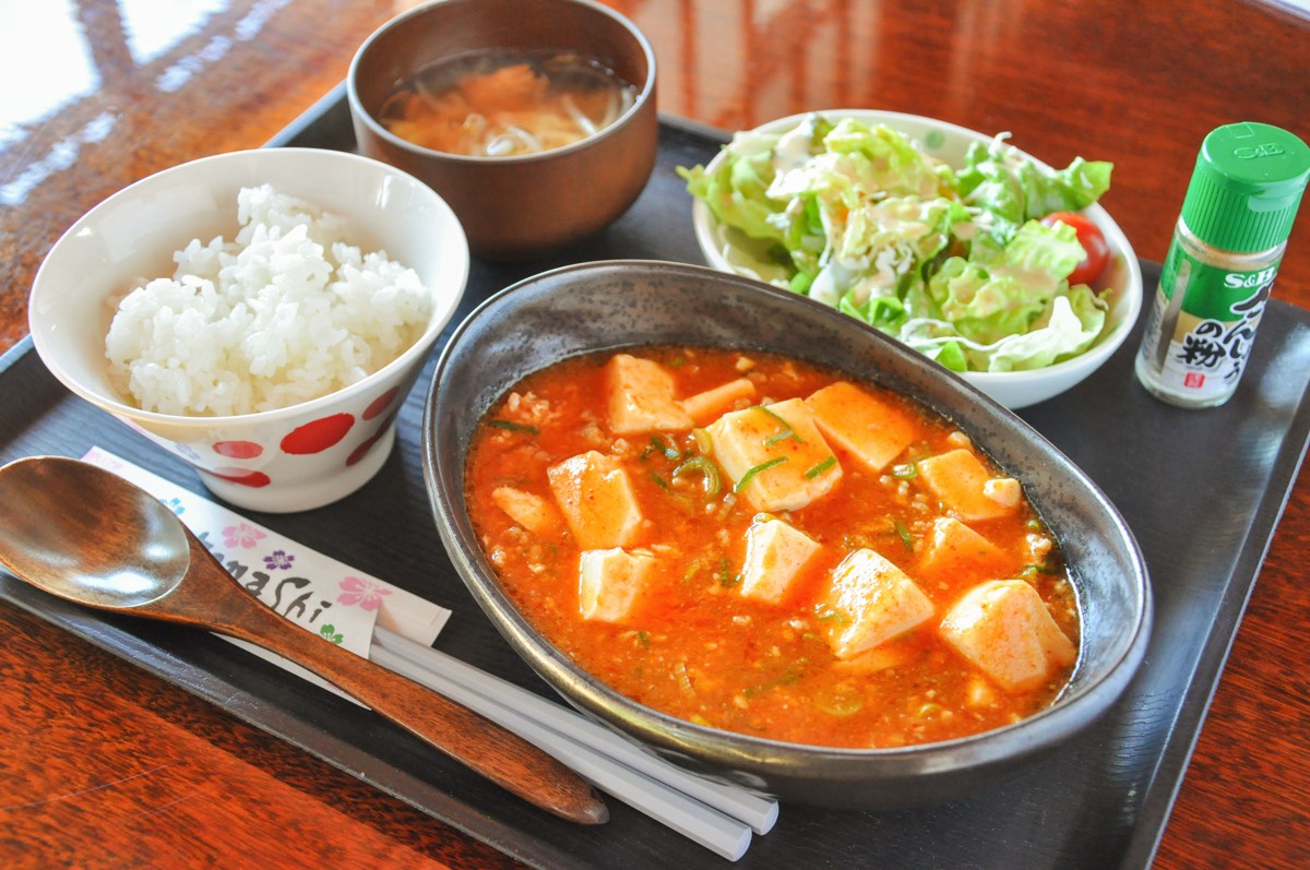 小麦粉と片栗粉をブレンドし、1度揚げて少し休ませてからもう1度揚げて肉汁をとじこめ、ひと口食べればしっとりとジューシーな肉汁が溢れ出す。ず特製の麻婆豆腐定食は豆腐に挽肉、ネギとシンプルながら、キムチ味で差別化。山椒は別添えにし、痺れが苦手な人も好きな人も満足させる。