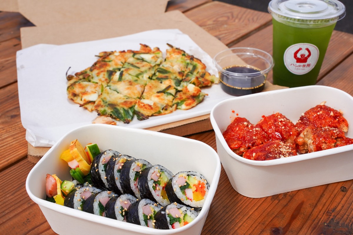 | 主なメニュー | ・コク旨!ヤンニョムチキン 5個850円・10個1,600円 ・カリッと!チヂミ26cm 1,400円 ・まるごと!キンパ 1本850円 ・ハンさんのおいしい桑茶 M350円・L500円 ・ハンさんの桑の実ソーダ 400円 ・ハンさんのレモンソーダ |