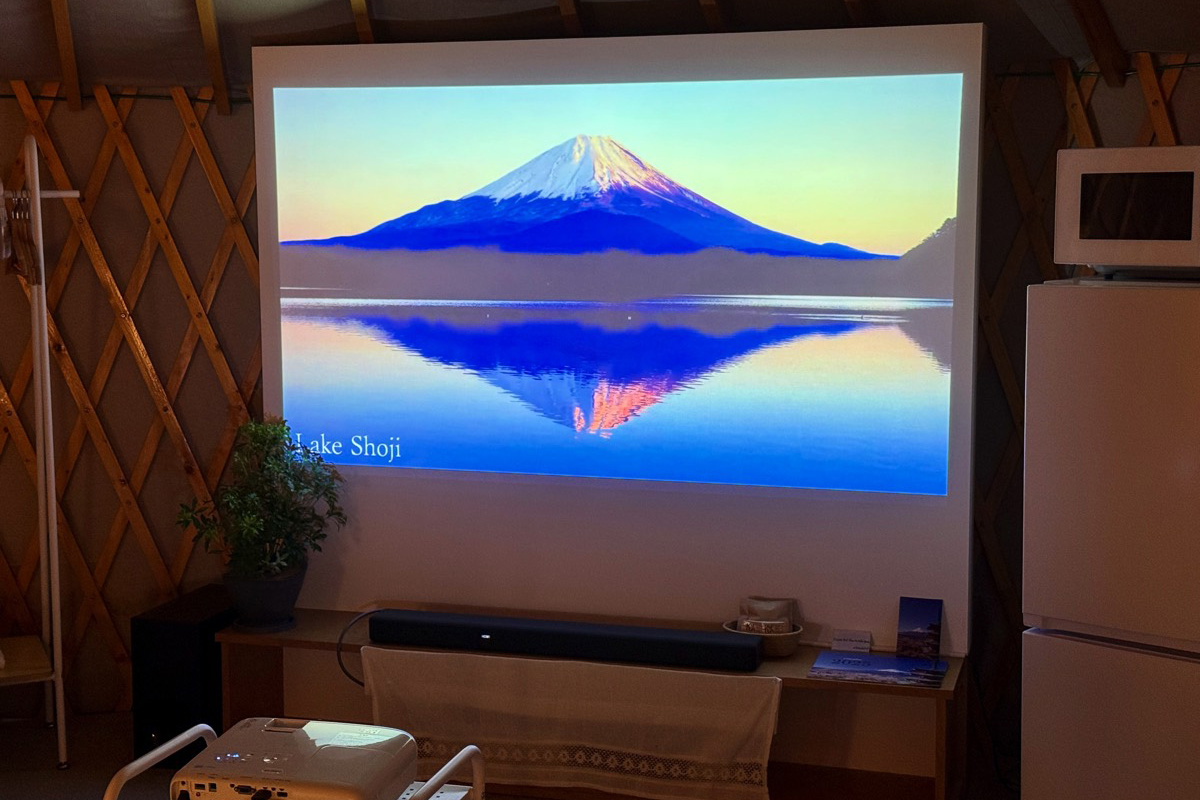 さらに、テント内には大きく映し出されるプロジェクターも完備。大画面で映画やライブ、スポーツ観戦など、みんなで盛り上がること間違いなし!