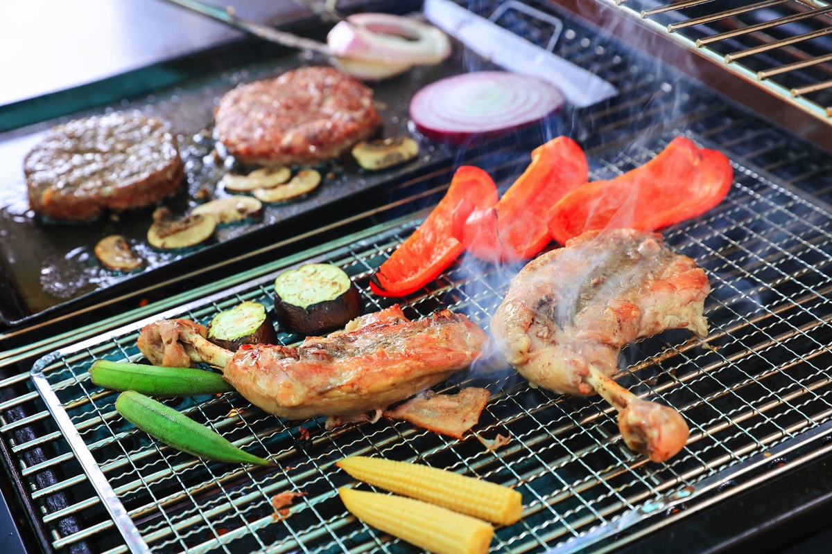 蓋付きの高機能バーベキューグリルで、こだわりの食材をジュゥジュゥ~。BBQの醍醐味はそのままに、本格カレールーは温めるだけ、具材はグリルでBBQ、ハンバーガーはキットで用意されていて、すべてレシピ付きなので誰でも簡単にできちゃう。肉汁溢れるジューシーチーズバーガーはアボカドをたっぷり入れて。カレーは骨付きチキンがほろりとほどけ、野菜の甘みとスパイスが極上ハーモニーを生み出す。