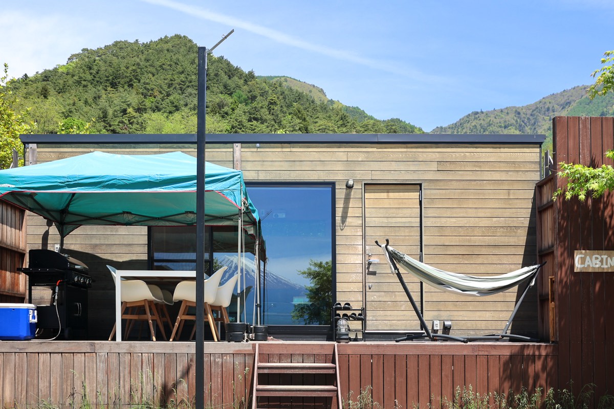 冷暖房完備でトイレや洗面、シャワーも付いた快適なキャビンは、ホテルとはまたひと味違ったステイをゆったりと楽しめる。テラスデッキではBBQはもちろん、ハンモックに揺られながら、Slow&Easyな時間を満喫。どのキャビンからも富士山が望めるのも◎!