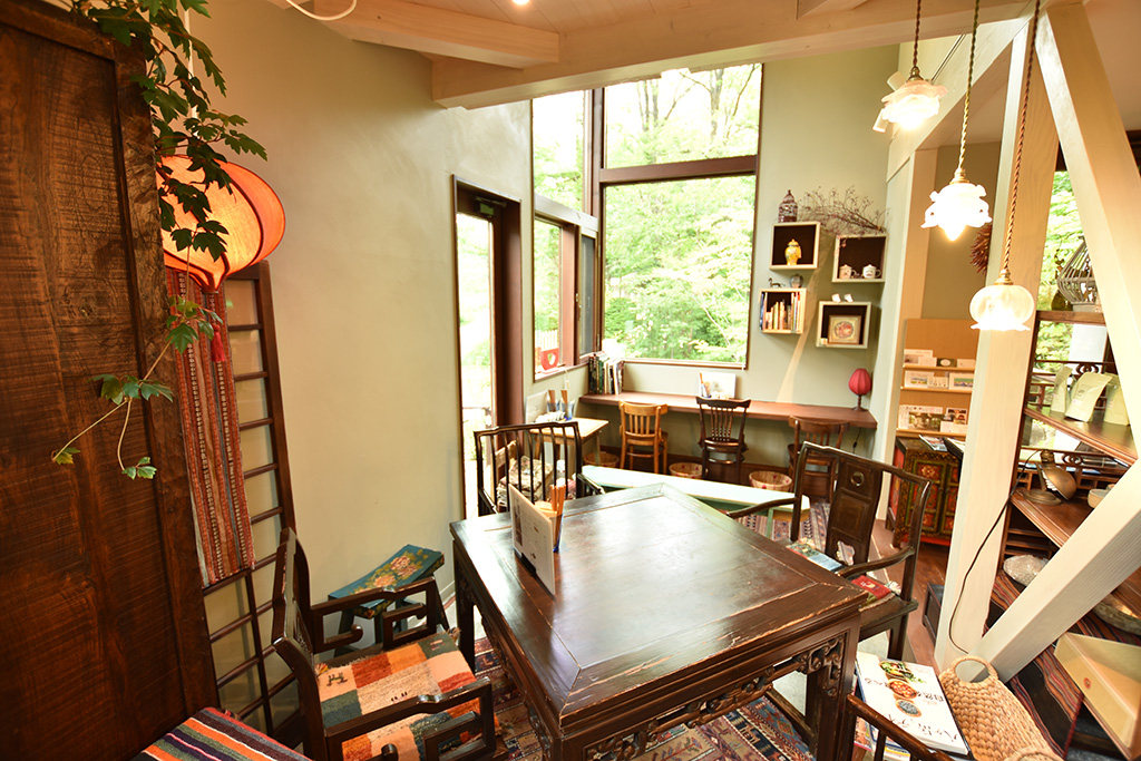 緑に囲まれた落ち着いた雰囲気の中で、ゆっくりお茶を楽しんでください。