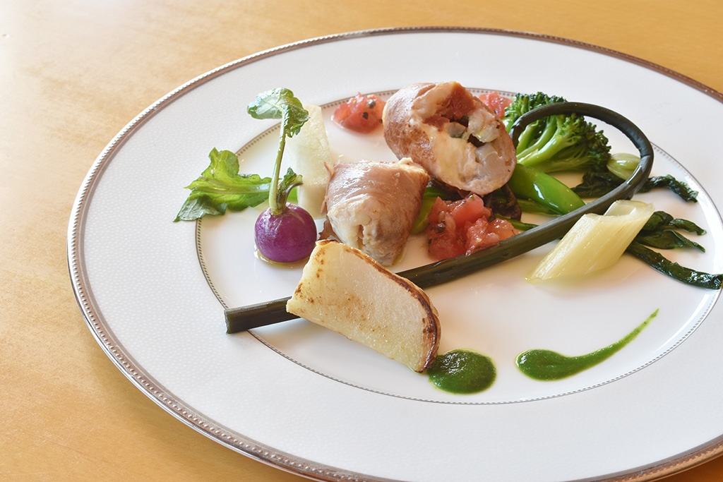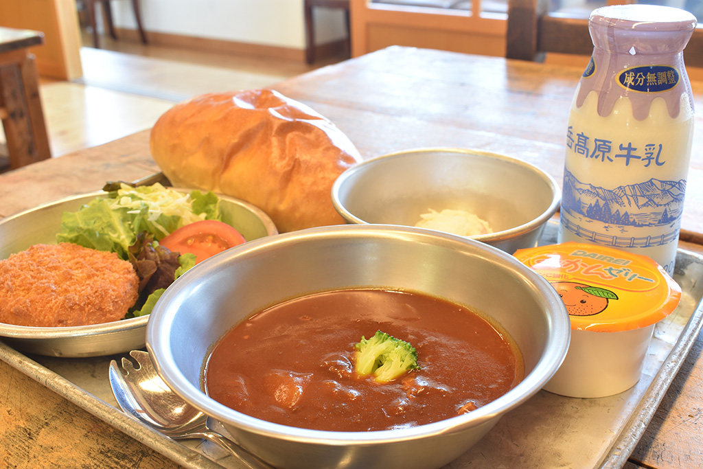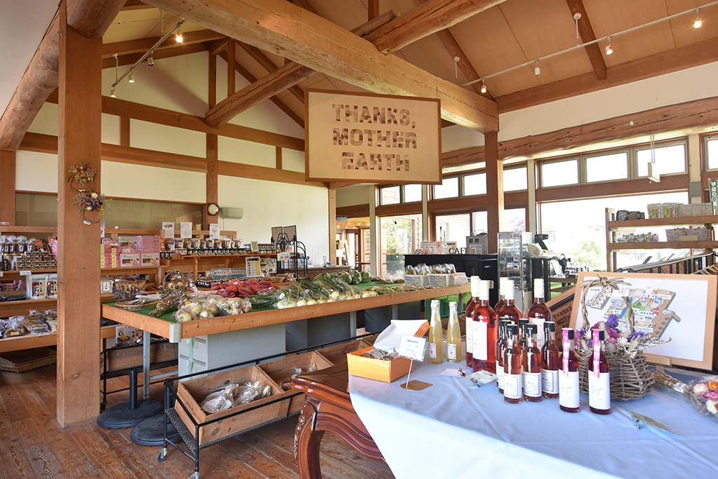昭和に建てられた校舎の中に、洋と和それぞれのレストラン、パン工房、農産物やワイン土産物等の販売所、宿泊施設、ハーブの湯を備えている。