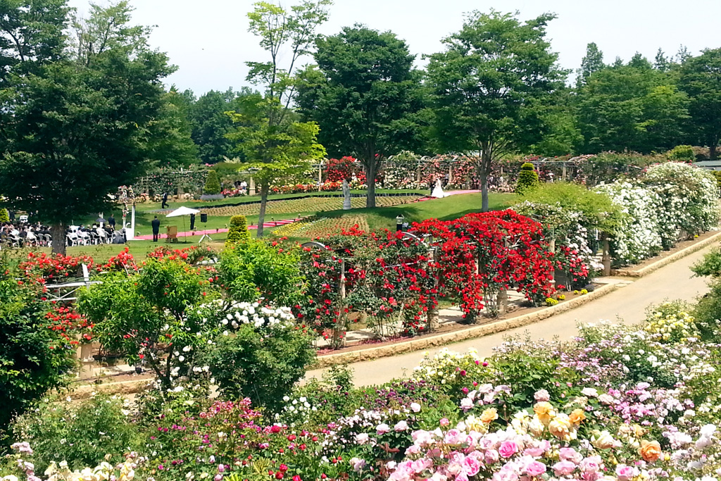 春は1,000品種6,000本のバラが見ごろを迎えます。日本一長いバラの回廊やローズガーデン、お妃さまのバラ園など見どころが満載!