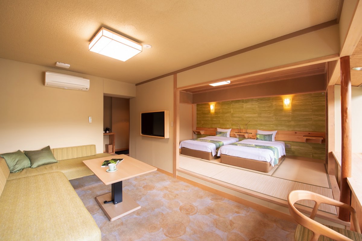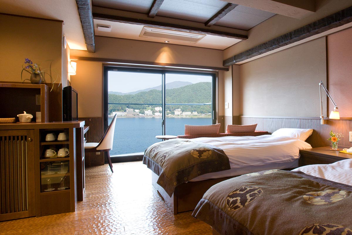 東館と西館からなる造りで、富士山ビューと河口湖ビューの客室がある。また客室の種類も露天風呂つきの部屋からバリアフリーの部屋、ワーケーションデスクのある部屋など、宿泊者のスタイルに合った一部屋が見つかるはず。西館は2023年3月7日にリニューアルオープンし、富士北麓の自然をイメージした緑と木を基調とした明るい雰囲気の部屋や河口湖の湖水と富士山の湧水をイメージした、青を基調とした落ち着いた雰囲気の部屋など、山梨県らしさが感じられる客室に。