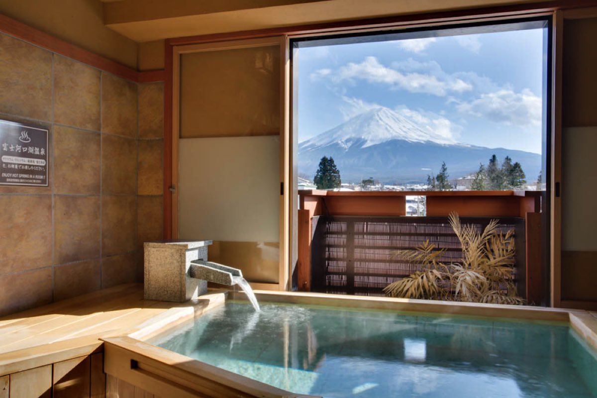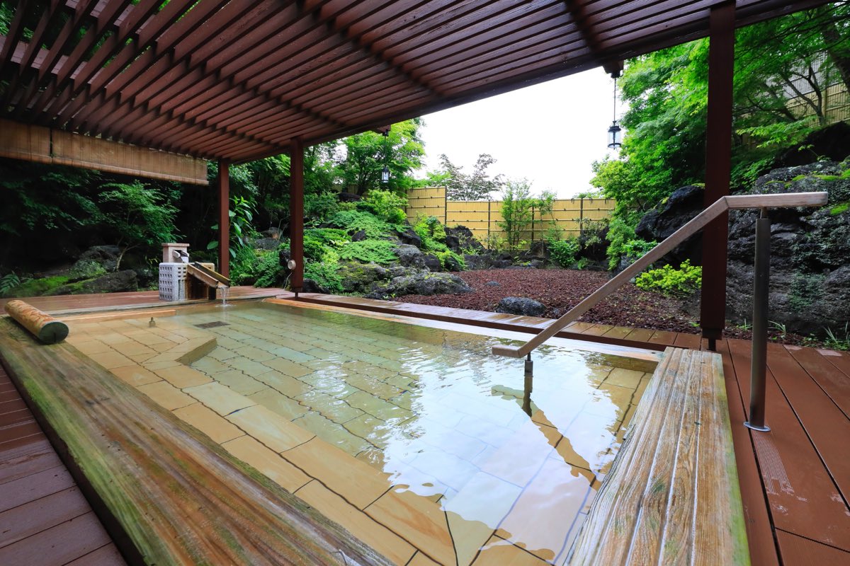 温泉は地下1500mから湧き出る富士山が育んだ天然の湯で、大浴場と貸切風呂(有料)がある。露天風呂やサウナ、ジャグジーを備えた大浴場は、開放的で広々とした造りに心身ともにリラックスできる。木の香がしっとり広がる「富士桧露天風呂」と、野趣あふれる開放感が気持ち良い「富士の岩風呂」を日替わりでお届け。貸切風呂は自然が間近で、四季の移ろいが感じられる。