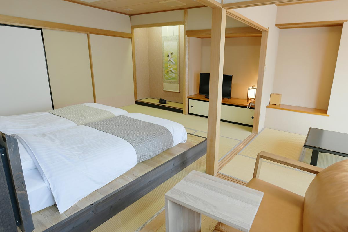 2020年にリニューアルし、お客様のスタイルに合わせた滞在が出来るように、枕やアメニティ、浴衣やお香など、さまざまなものを選ぶことが出来る。「おこもりできる自分スタイルの宿」というコンセプトにふさわしく、自分好みのお部屋にコーディネートして、特別な滞在時間を楽しめる。温泉は24時間入力可能で、柔らかい肌当たりが大人気。露天風呂は庭園の中にある岩風呂「紫水晶」と檜の香りが立ち昇る癒し空間「彼方の湯」の2種類がある。