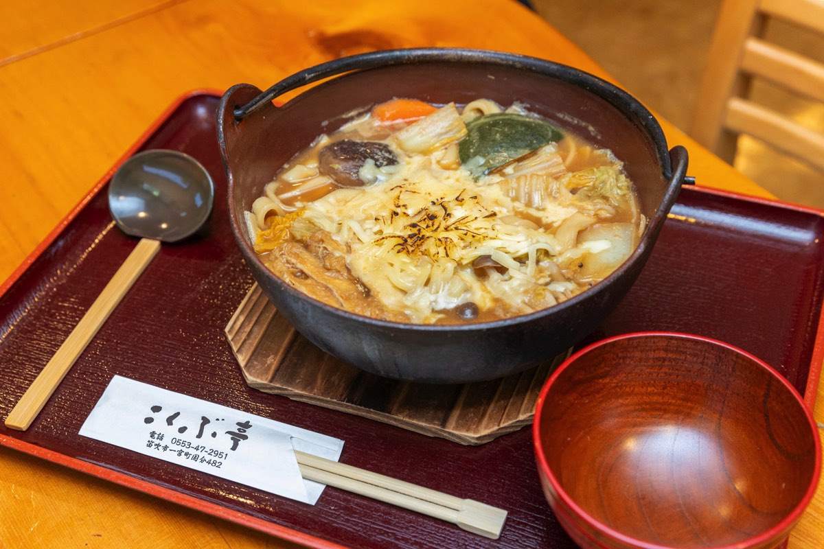 笛吹市笛吹市一宮町で25年以上営む「こくぶ亭」。二代目店主からスタートしたほうとうは、山梨の老舗味噌屋「五味醤油」の味噌を使用し、心温まる味をベースに3種類が揃う。