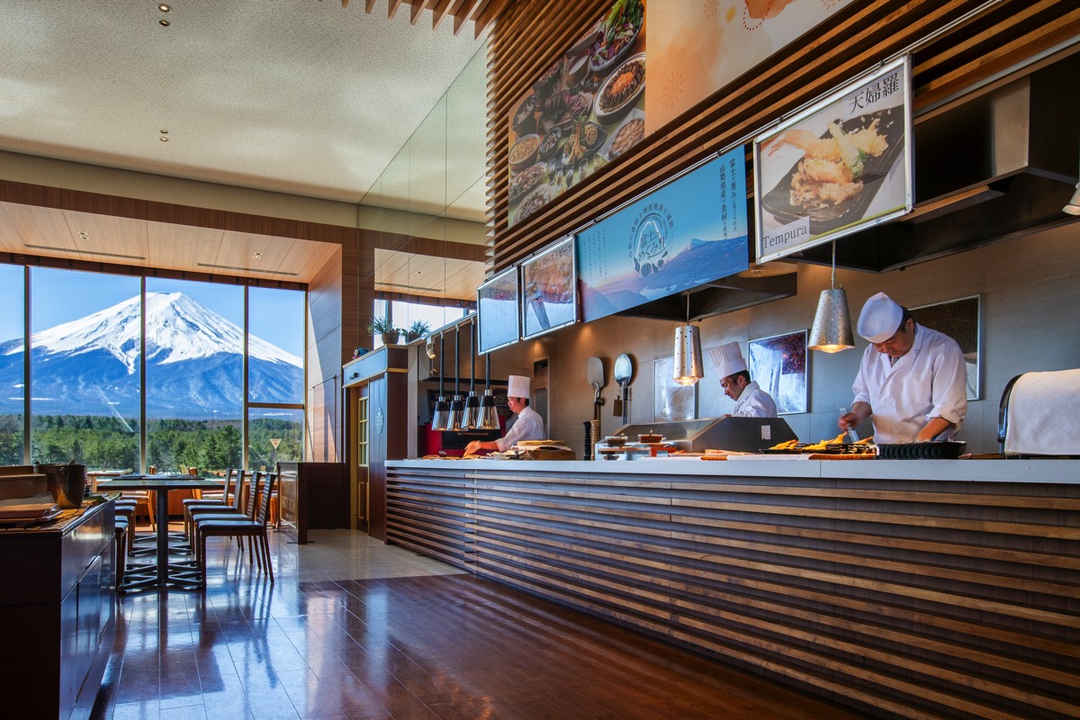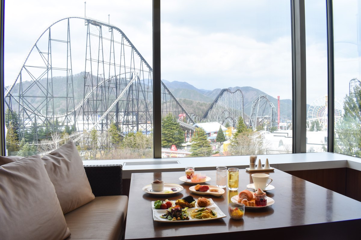両サイドに窓を配し、開放的な店内から富士山と遊園地が一望できるロケーションは圧巻!
