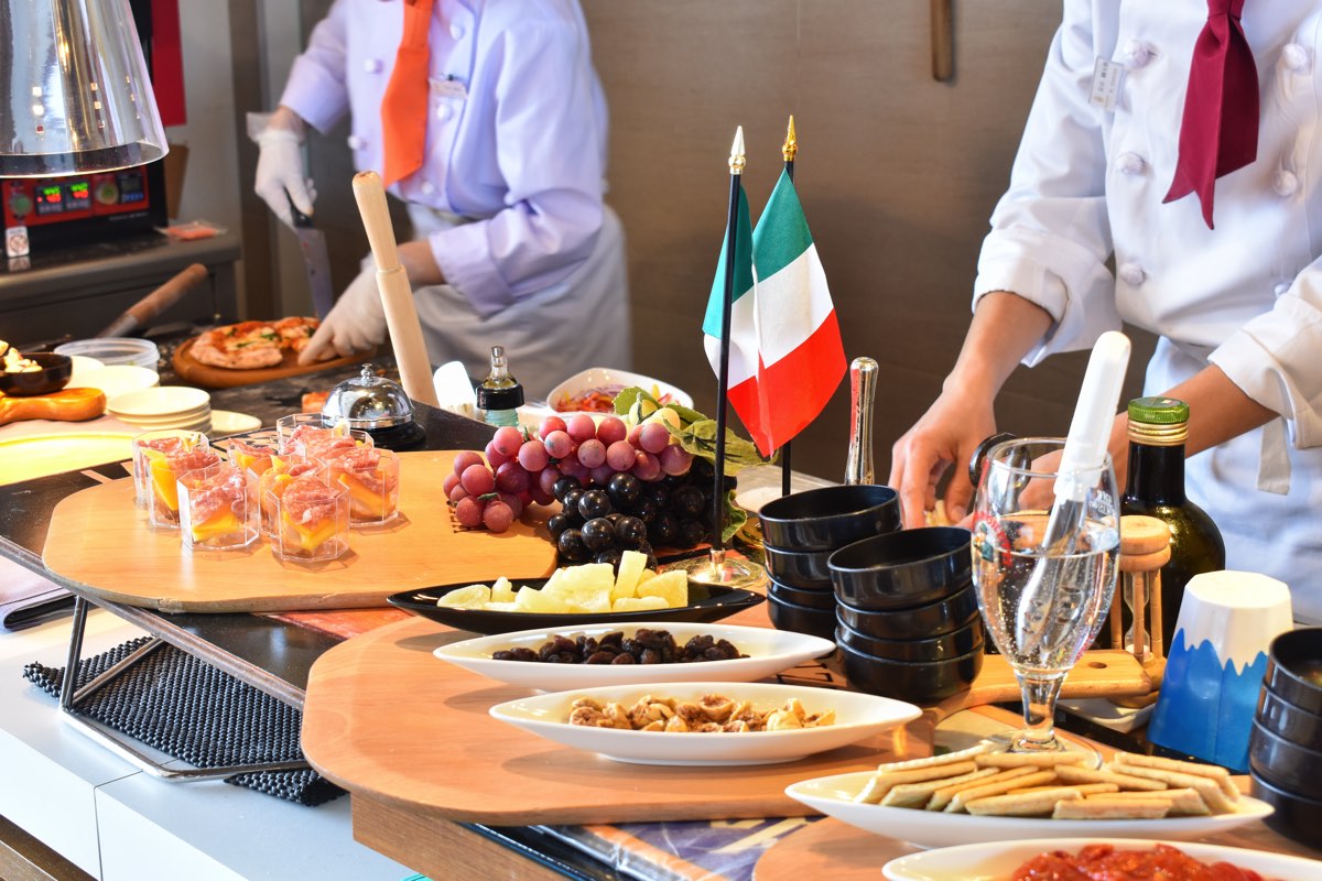 さらに、店内には季節によってローストビーフや本格ピッツァなどの出来立て料理をシェフが目の前でサーヴするライブキッチンも。