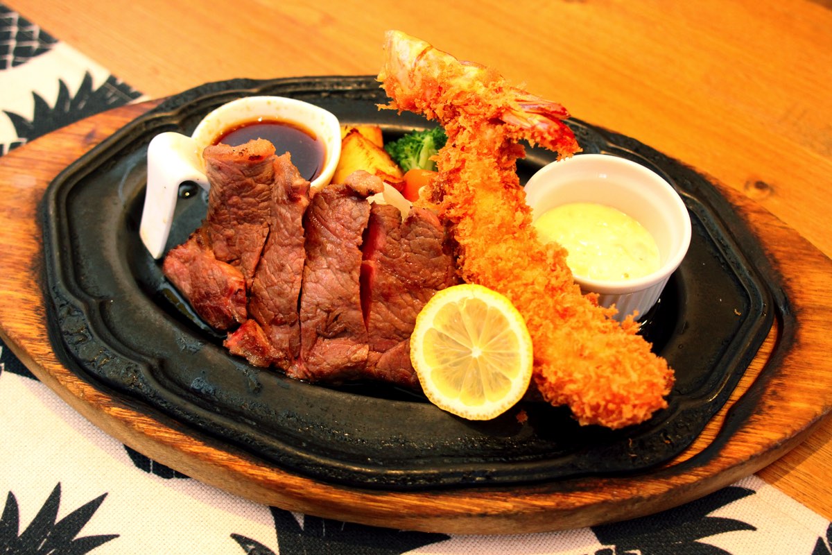 ハワイの小物やサーフボードをあしらった店内は、まるで海辺のレストランのようなプチ贅沢な気分を味わえちゃう!訪れたら必ず食べたいおすすめは、極めて柔らかで上質なお肉にこだわったハマッコ看板メニューの「ハマッコDXランチ」。平日限定のランチで、大人気の鉄板サーロインステーキと名物エビフライにサラダ、ライス、ドリンクが付いた豪華な内容で至福なランチタイムになること間違いなし!